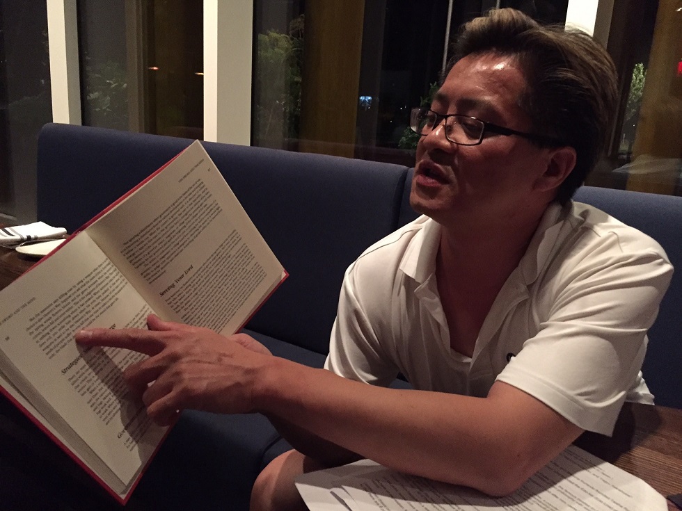 Teaching in traditional budo is heart-to-heart: Tong Sensei instructs Kyle on the nuances of a technique